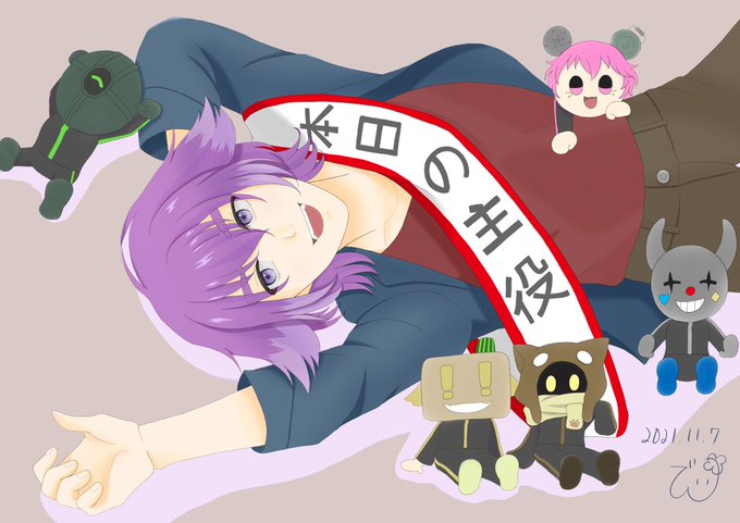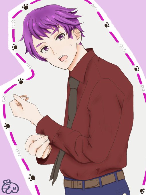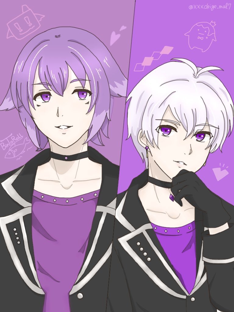 ※擬人化注意 完成〜🐶✨ 支度中のしるこさん💜 髪型は自分の欲望をつめこんだ笑 📦「兄さん早くしないと遅れるよ」 🐶「えっ!?もうそんな時間」 的なやりとりしてたに違いない…!! #bintrollFA #bintroll