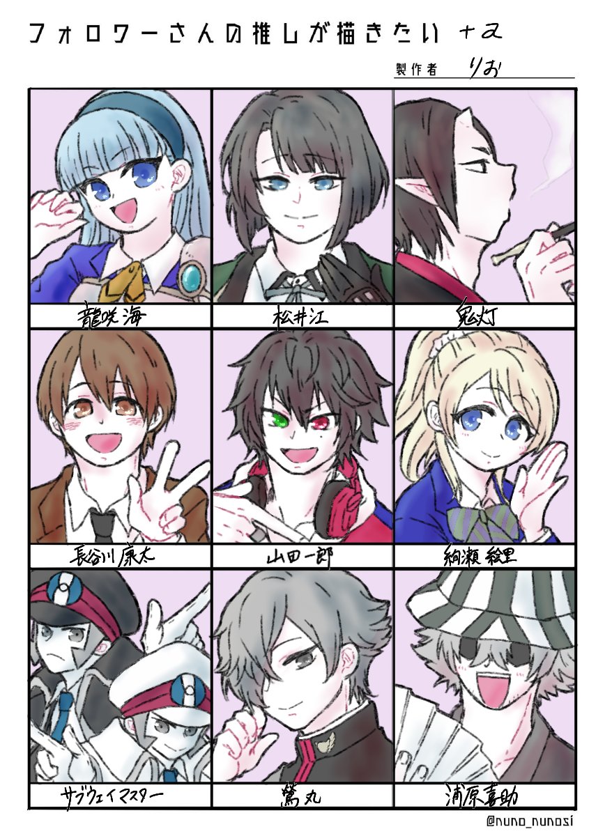 #フォロワーさんの推しが描きたい リプくれた皆さんありがとうございました!楽しかった~✨ 四隅は私の歴代推しですよろしくお願いします~!
