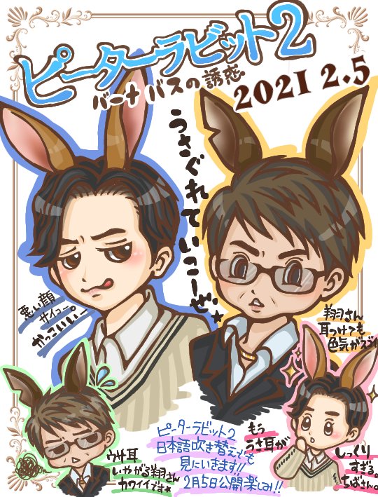 遅くなっちゃったけど💦 締切に大丈夫かな?(笑) ピーターラビット2 絶対見に行きます!日本語吹き替えで✨ お二人のモフ悪ボイス楽しみにしております✨🥕🐰 #ピーターラビット2 #うさグレる #2021年2月5日公開 👕🐰🎂