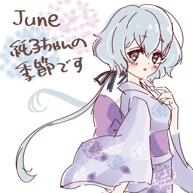 今日から6月。仕事前にイラレで落書き #ゾンビランドサガ #紺野純子 #adobeillustrator #ベジェイラスト #紫陽花 #ご先祖ではないほう #浴衣 #illustrationart