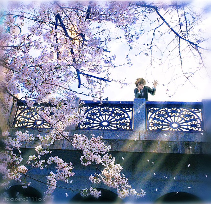 16 83 桜も咲いたので、桜の間から好きな人を見つけて手を振る男子高校生置いときますね(過去絵ですが)😌 22/03/29 13:35