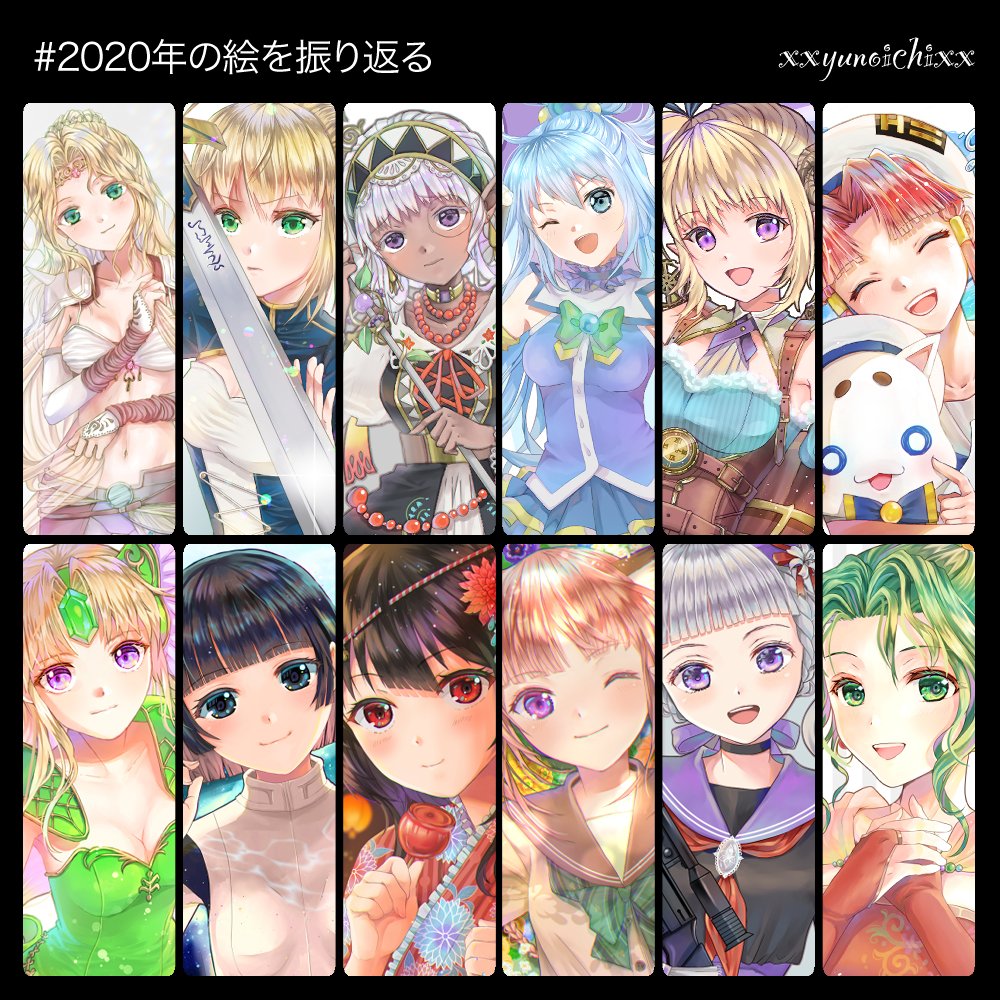 #2020年の絵を振り返る 今年も残すところ後僅かになりました。 たくさん絵が描けて幸せでした! 並べるとぼや〜とした印象の絵が少しずつカラフルになって来たのかな?😂来年はもっとたくさん描いて上達できますように!🙏
