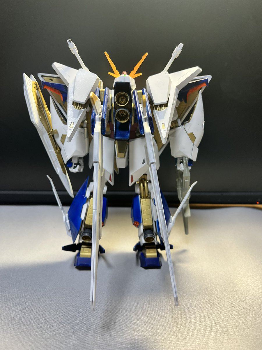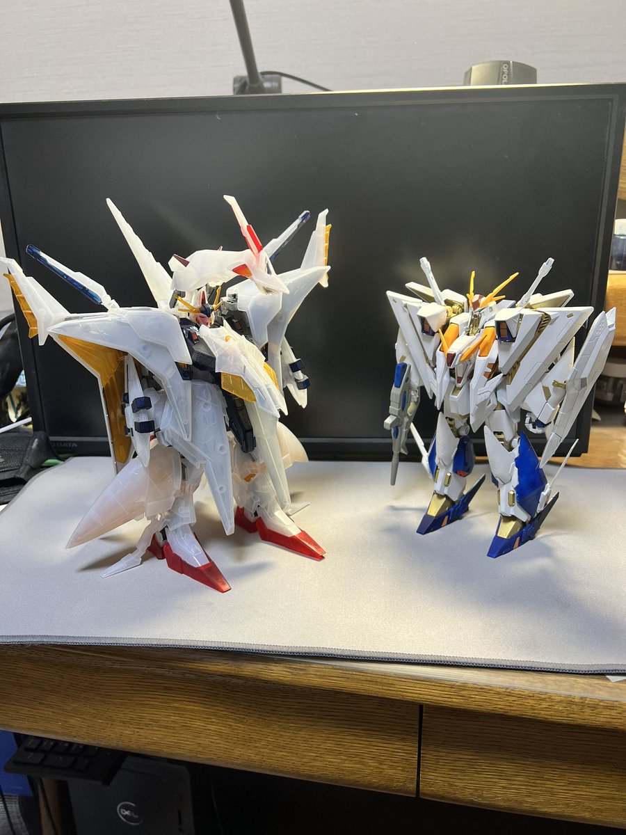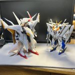 やっとクスィーガンダム完成しました。 結構苦労しました! その分達成感があります。 以前作ったペーネロペーと比べると、ペーネロペーの方がフライトユニットの関係でデカいですね。 #ガンプラ好きとつながりたい #ガンプラの画像を貼るとRTされると聞いて #閃光のハサウェイ
