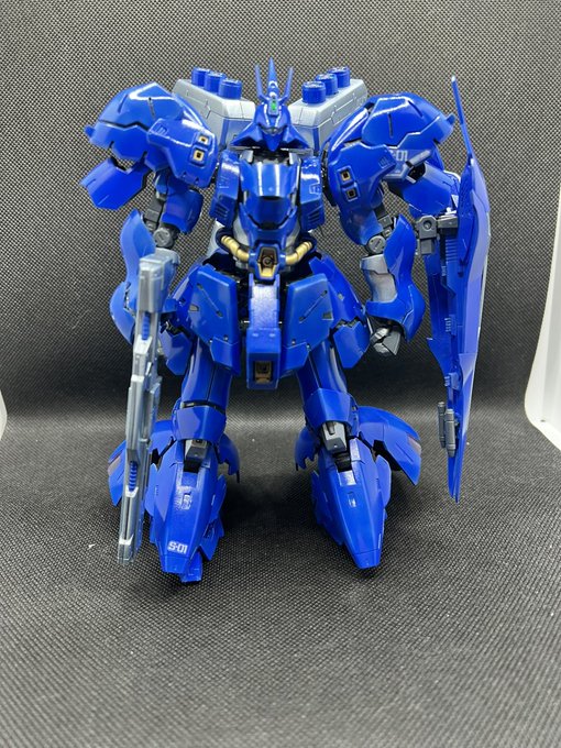 遂にRGサザビー完成です! 敢えてのブルー塗装でやってみました! 今回はマジで塗装がきつかったです。 途中から充電式じゃなくてコンプレッサー使ったら感動しました。 次も頑張ります! #ガンプラ好きな人と繋がりたい #ガンプラの画像を貼るとRTされると聞いて #サザビー