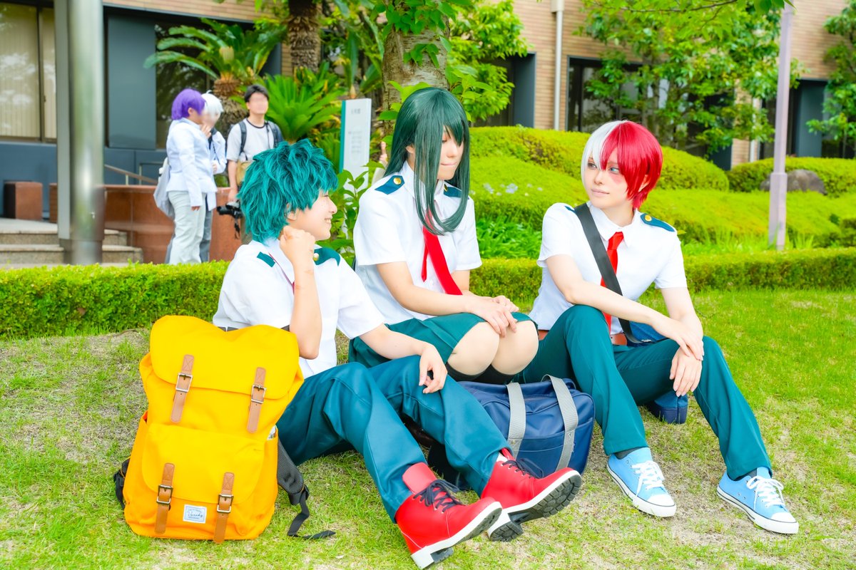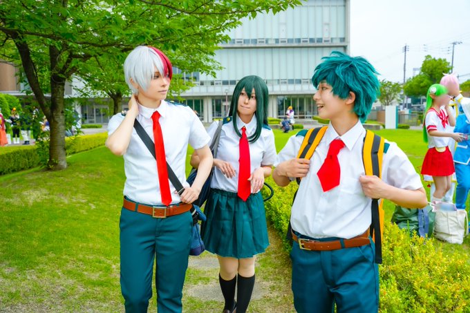 Cosplay / MHA 緑谷出久: @yojoninaritaize 蛙吹梅雨: @arice_johannes 轟焦凍: @y0422cos 📷: @_kurosuzaku めちゃくちゃ平和空間でかわいい…☺️✨ #アコスタセブンパーク天美