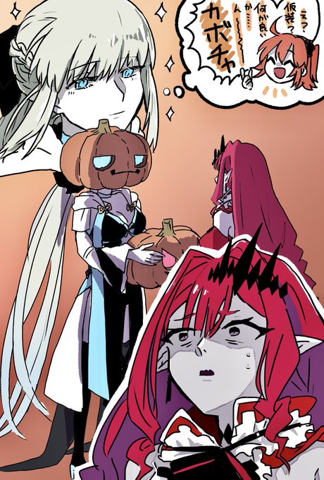 2058 8465 ハロウィンの仮装を愛娘と一緒に楽しみたい陛下 唐突なかぼちゃ頭のお母様になんて声をかければいいのか分からない愛娘 #FGO 22/10/31 03:43