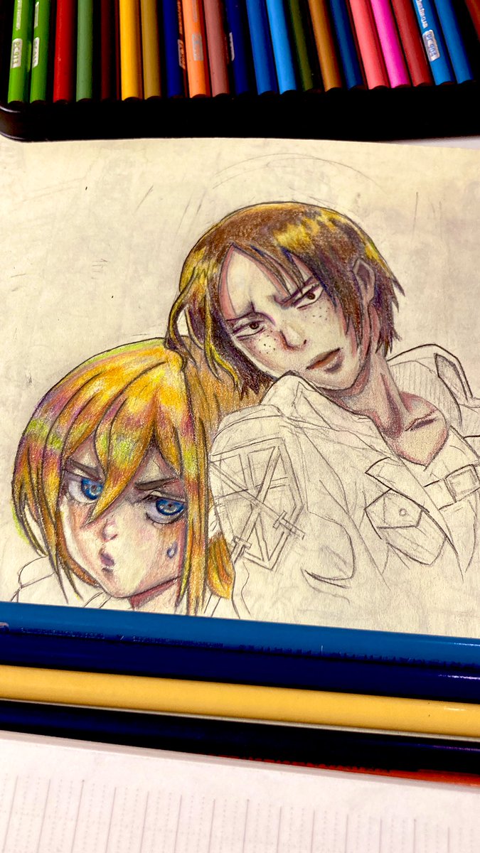 1 4 #進撃の巨人 #色鉛筆 #絵 #模写 頬赤らめさせましたッ 21/12/18 18:56
