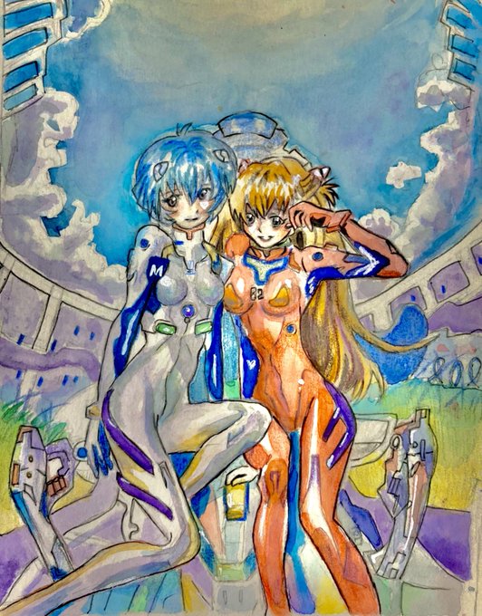 キャラデザ好きで見始めたエヴァの綾波とアスカ描きました。綾波鬼かわ😣2人共14歳か私なんてぼけーーーーっとスポンジボブみてたで。#水彩 #色鉛筆 #anime #fanart #painting #paint #procreate #artwork #illust #綾波レイ #drawing #插图 #插图画家 #落書 #画 #エヴァ
