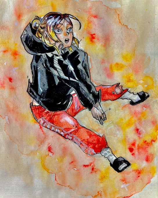 下書き2.5時間 色付け3時間 明日日光あるとこで撮ってまた投稿します_(┐「ε:) #イラスト #絵 #anime #絵描きさんと繋がりたい #水彩 #色鉛筆