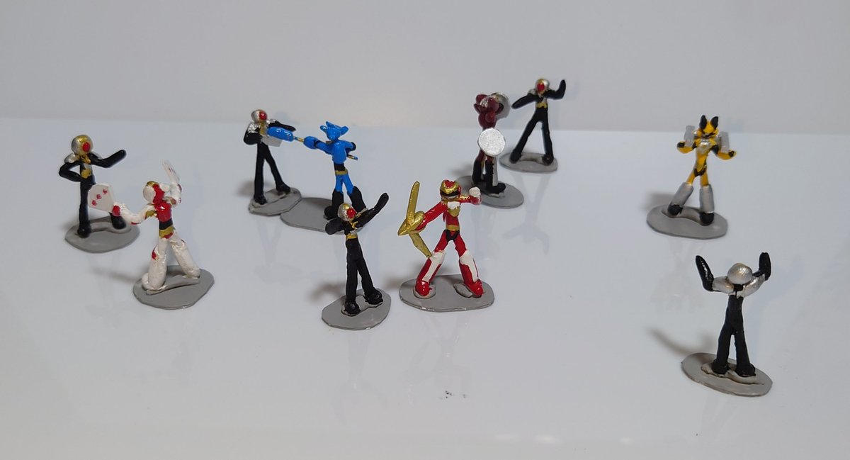 #造って遊ぼ またまたほぼ1/60シリーズを作ってるので進捗をば まずはジャスティライザーの3人、左からガント、グレン、カゲリ 必殺技のシーンをイメージしました
