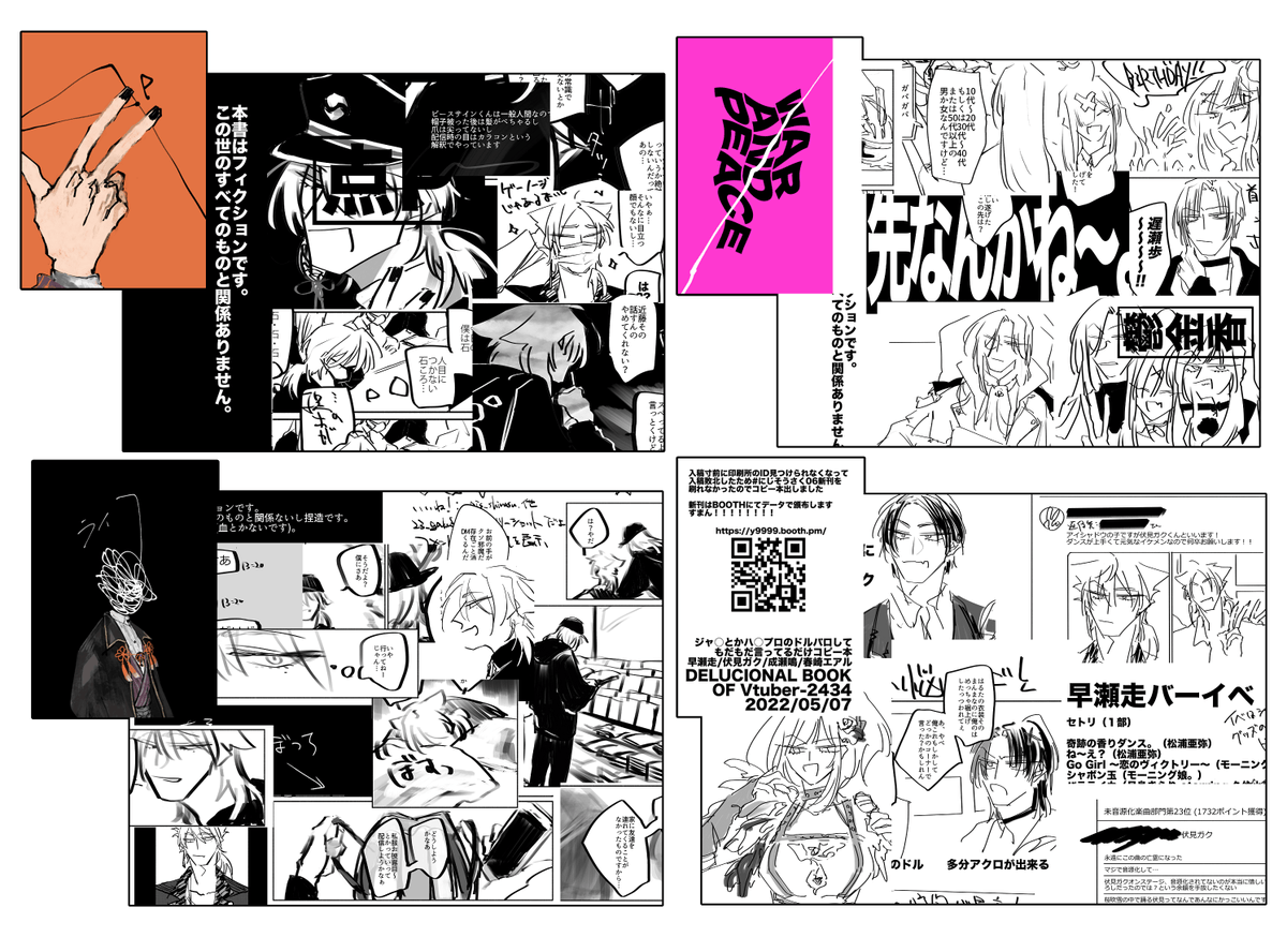 0 4 5/5 #にじそうさく07 B - 49 平成軽薄体 ピースサインくん+伏見ガクの本 チューリップ組の本 刷りたかったので刷ったパチ屋絵のポストカード あとなんかあります 明日お品書き作ります 23/05/02 21:58