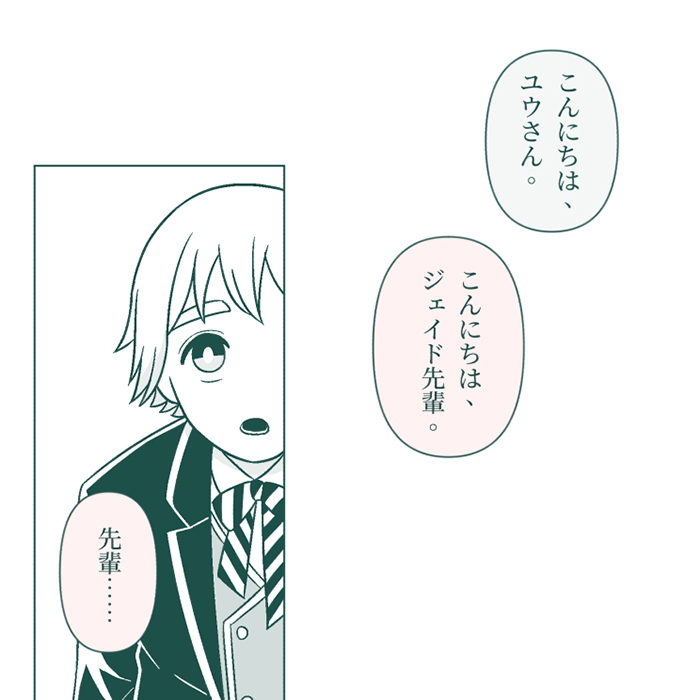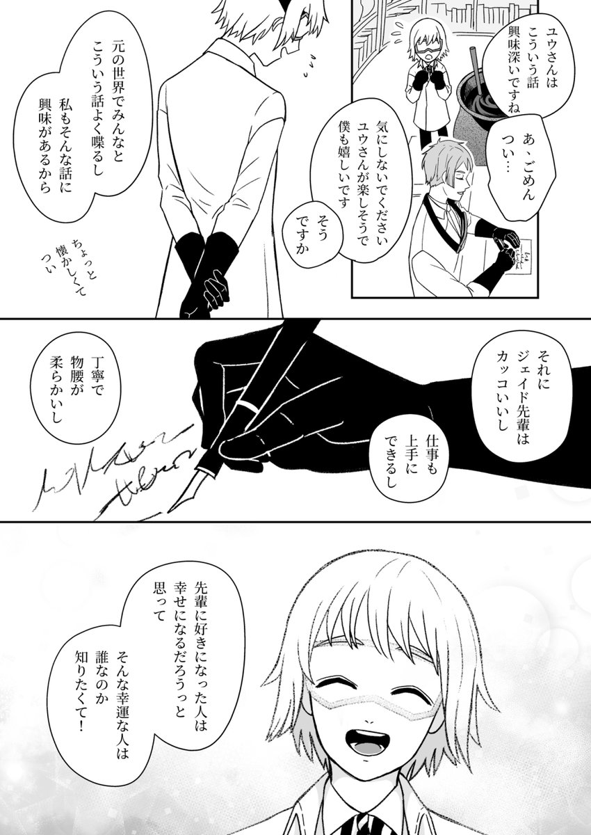 「未来予告」ジェイ監♀️ 1/10 テララブに展示した、ジェイドが未来の監督生を出会うの話です。 翻訳:クルミさん (@kurumi7660hc) #テララブ1105 #twstプラス
