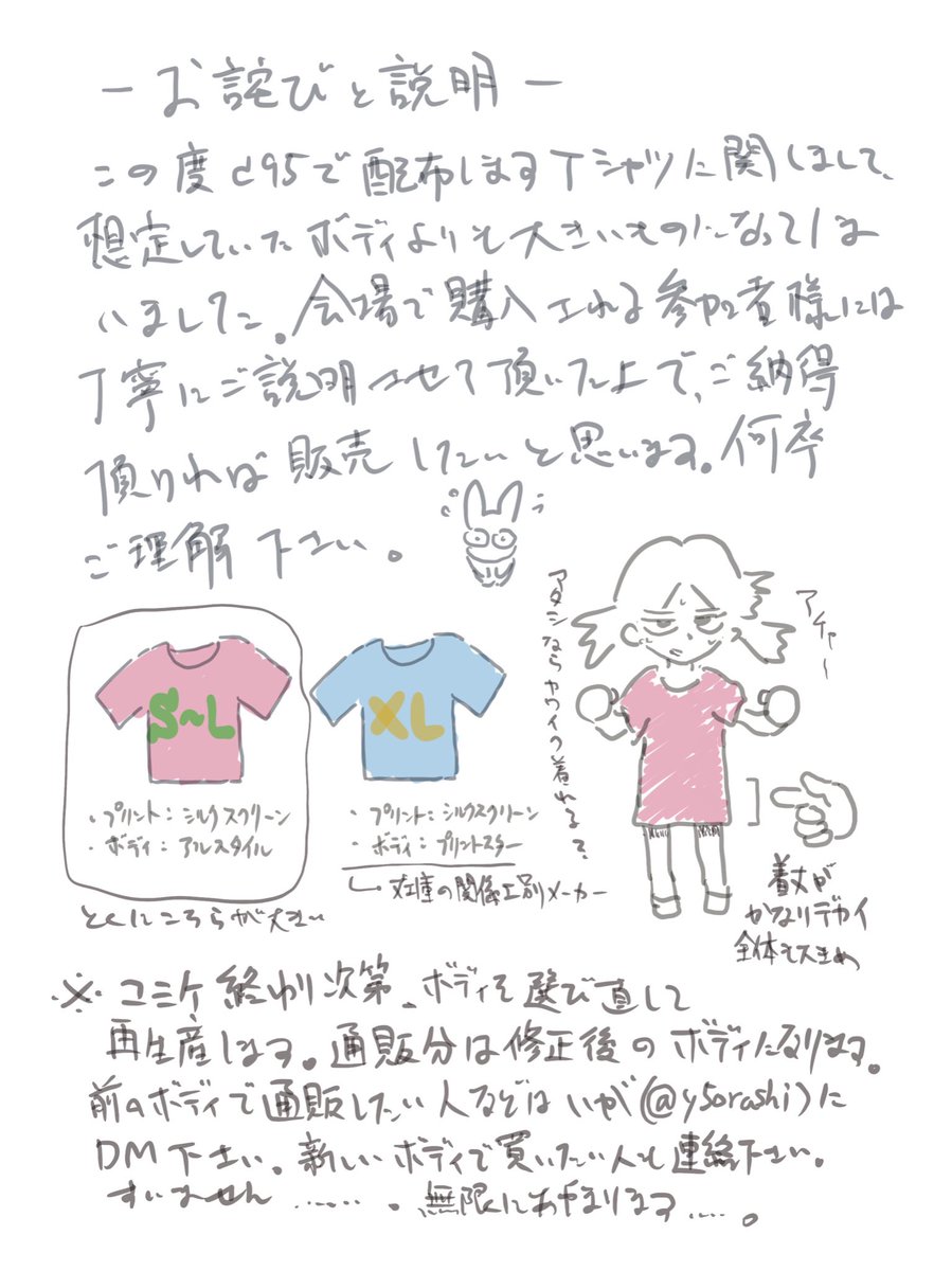 遅れましたが、コミケで配布したTシャツの通販概要になります。Tシャツのボディ表もありますので、合わせてご確認ください。もっと詳細はこちら→united-athle.jp/ua/items/index…
