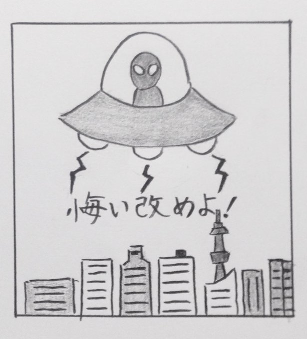 #140字小説 #漫画が読めるハッシュタグ 【最後の審判】 「悔い改めよ。神の国は近づいた」 各国の上空に現れたUFOからのメッセージだった 神は人間だけの神ではなかった。 多くの国々はメッセージを受け取ったが日本はある大臣を辞任に追い込む事が国会の優先課題だった。 日本に最後の審判が下った。
