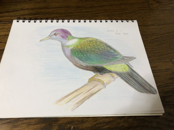 #みんなで楽しむTwitter展覧会 今晩は🌟 今日は時間がありましたので描きかけの鳥(ミイロコンゴウインコ)1885年頃に絶滅をじっくり描きました😅 絶滅してもう見られない鳥、綺麗な鳥がたくさんいますね。 とうぶん動物は鳥を描いて行こうと思ってます🤗🍀