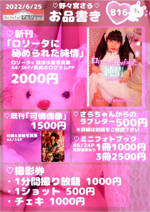 1 6 【告知】 6/25アコスタマルシェに参加します!! お品書き等は追って告知しますが写真集、撮影券の販売を予定しています🎀🎀 #アコスタ #アコスタマルシェ 22/05/16 11:06