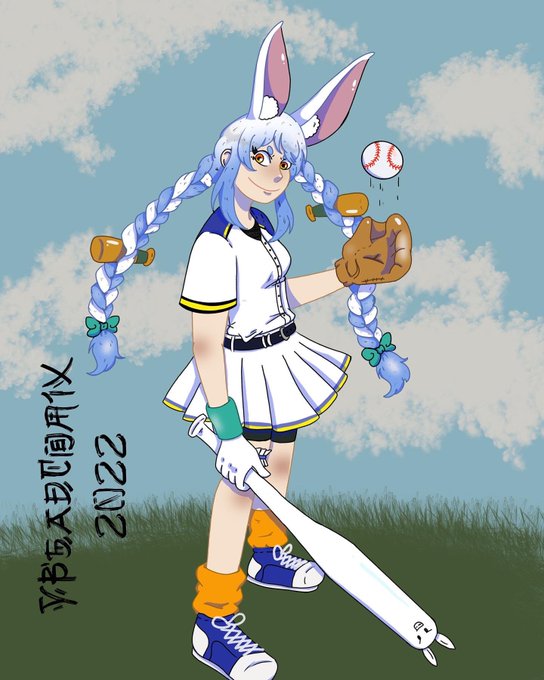 Next up on the Bat is @usadapekora ! For the prompt bat in her infamous baseball league uniform! #inktober #inktober2022 #hololive #vtuber #usadapekora #digitalart #art
