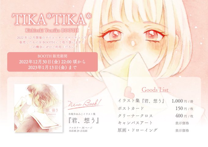 🌱通販のお知らせ 期間限定でBOOTH販売を行います✨ 【販売期間】 2022年12月30日(金)22:00頃より 2023年1月13日(金)まで tikatika.booth.pm ※販売開始30分前にクローズ どうぞよろしくお願いします🙌 #booth_pm #イラスト
