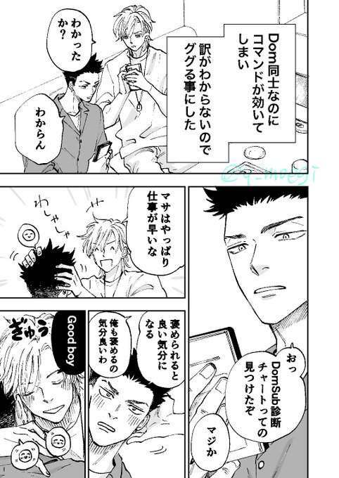有難いことに連載が決まりました!SNSに上げていたDom/Subユニバースの二人です。1話目はSNSに上げた内容を大幅加筆修正して掲載です。よろしくねー!やったー! #ためしにコマンド言ってみた twitter.com/y_moegi/status…