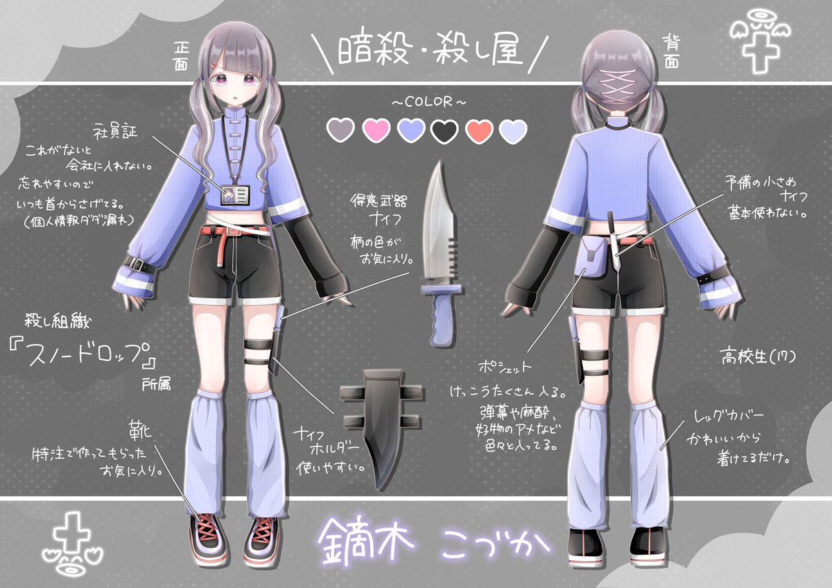 ◎キャラデザ🤲🏻❕ 鏑木こづか/女子高生(17)/ナイフ使い 殺し組織「スノードロップ」所属 #創作 #イラスト #illustration