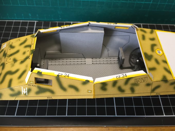 ハッチを全開にすると、ちょっとだけ見える簡単内装が割とそれっぽくて幸せなのです #ペーパークラフト #カードモデル