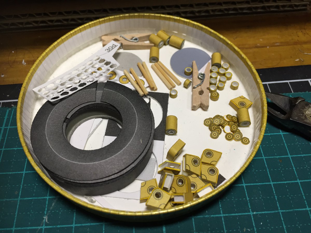 0 11 あとは印刷面がちょっと弱くて、擦ると色がハゲちゃうんでやや仕上がりが汚くなってしまったのは反省 つるんとしたテクスチャなので重厚感出したければ水彩絵の具でちょっと汚しを入れてもいいかも #ペーパークラフト #カードモデル 23/05/08 22:56