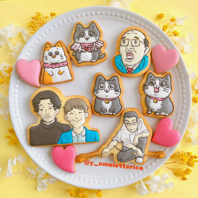 毎日拝見している『ねこに転生したおじさん(ねこおじ)』をクッキーに🍪🐈 友達もねこおじ好きなので一緒に食べました(*´ロ`*)💕 かわいいが詰まったお話なのでみんなに読んで欲しいです😆💕 @yajima_en