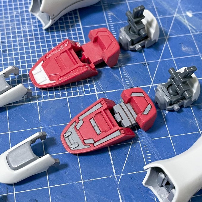15 131 【HGUC Vダッシュ】足裏の穴埋めと部分塗装が終わりました。 今週は背面メインスラスターとコアファイター機首部分を塗り分け。 久しぶりに作業できて楽しい! #ガンプラ 23/03/06 01:03