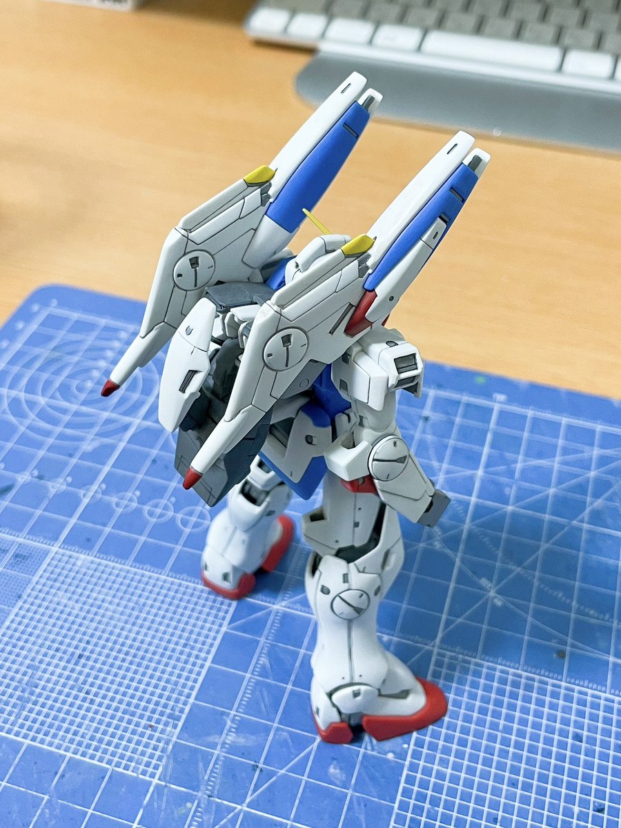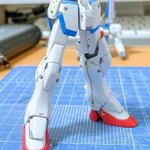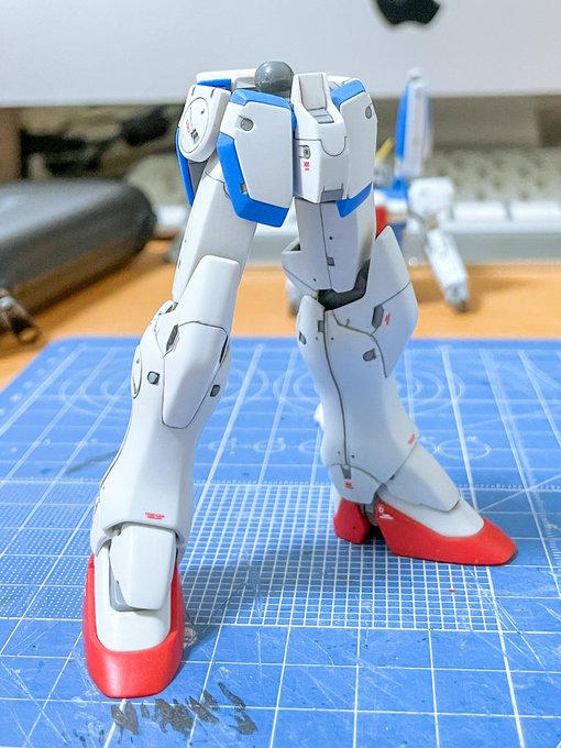 【HGUC Vダッシュ】足裏の穴埋めと部分塗装が終わりました。 今週は背面メインスラスターとコアファイター機首部分を塗り分け。 久しぶりに作業できて楽しい! #ガンプラ