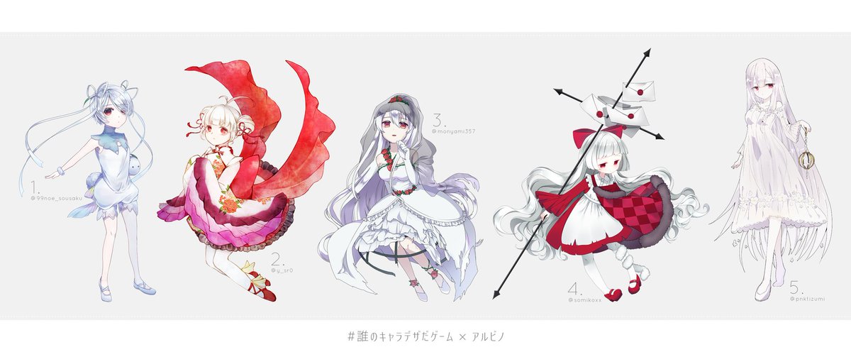 そみこさん主催のアルビノをテーマにした誰デザに参加させていただきました! ゆしろのデザインしたアルビノっ子を当ててみてください (因みに私は2番の子を描かせていただきました) #誰のキャラデザだゲーム
