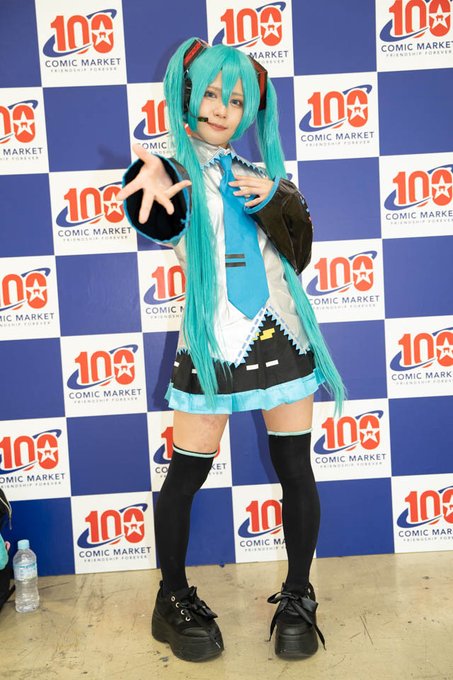 コミックマーケット100 2日目より 初音ミク(蜜苺さん@mitsumai39) コミケ百回記念のC100アニバーサリーポップ前で撮影しました。 #コミックマーケット #コミックマーケット100 #CM100 #コスプレ #初音ミク