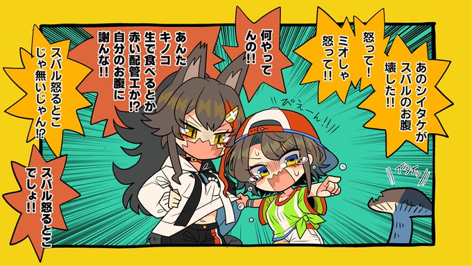 スバルちゃんシイタケ生で食べたって聴いてガチの【ミオしゃ怒って案件】だなぁと思って草が少々生えた #プロテインザスバル #みおーん絵