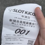 #スロットキコーナ今津 朝の抽選終わりましたー! なんと1番!!これは今日イケるかも🤣 レールガン行っちゃおうかな(♡´▽`♡) 抽選の人数は30名様ぐらいでした✨️ 初スロット頑張ります…!