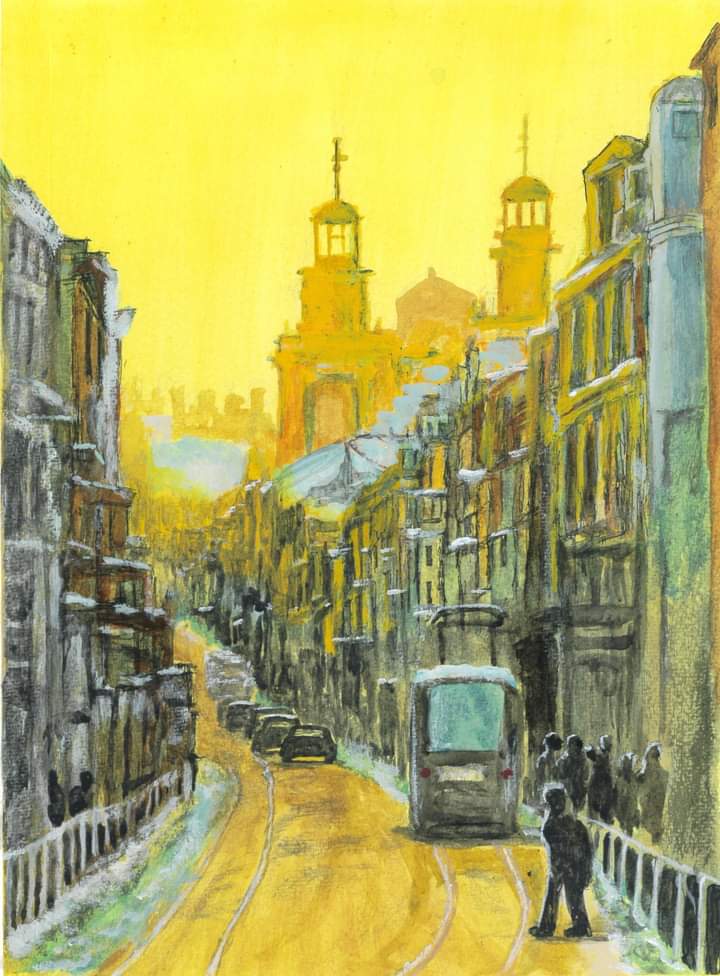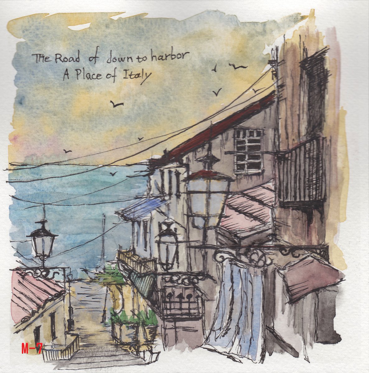 #水彩画 #レンガ #ハンドメイドフレーム レンガ柄のフレームに蔦を少し描いてみました。額に合いそうな絵は、行ったこともなく雰囲気だけで描いたインドムンバイのマンション。 英文もテキトー😄 F2 水彩画