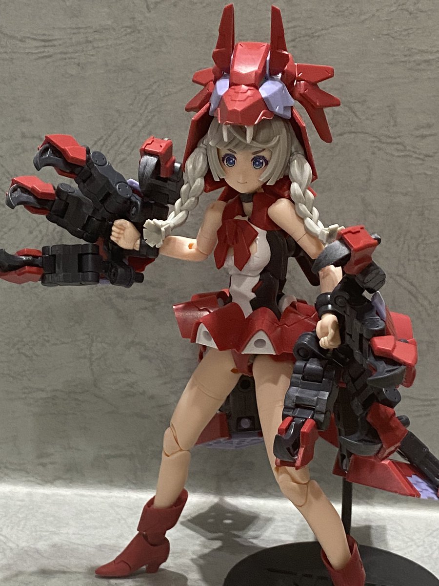 赤ずきんの武装パーツ組み完了。 スカートに付く爪パーツを8つ作るとか同じパーツを作る作業が多かった。💦 とりあえず組むのは終わったから次は塗装だけど、どんな感じにするかなぁ。😆 #メガミデバイス #カオスアンドプリティ #赤ずきん