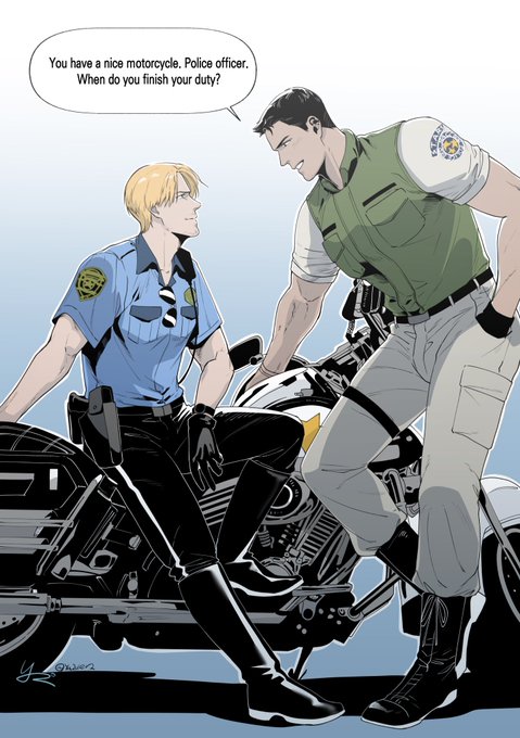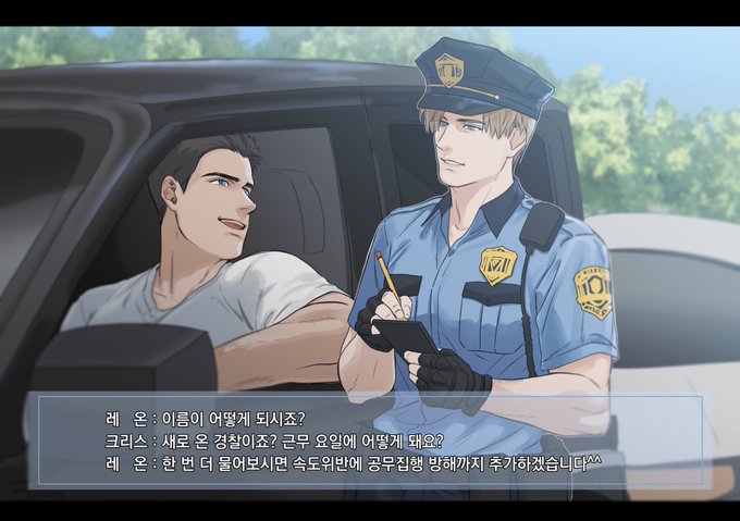 오늘도 처음 계획과 일억만년 달라진 결과물.. .언제쯤 내가 원하는대로 그림을 그릴 수 있는겨… 여튼 크리레온으로 속도위반한 크리스 딱지 끊어주는 신입 레온..! 크리스는 수작 거는게 아니라 순순히 궁금해서 물어봤지만 레온은 수 많은 작업에 지쳐서 영혼이 사라졌습니다 🤗 #Chreon