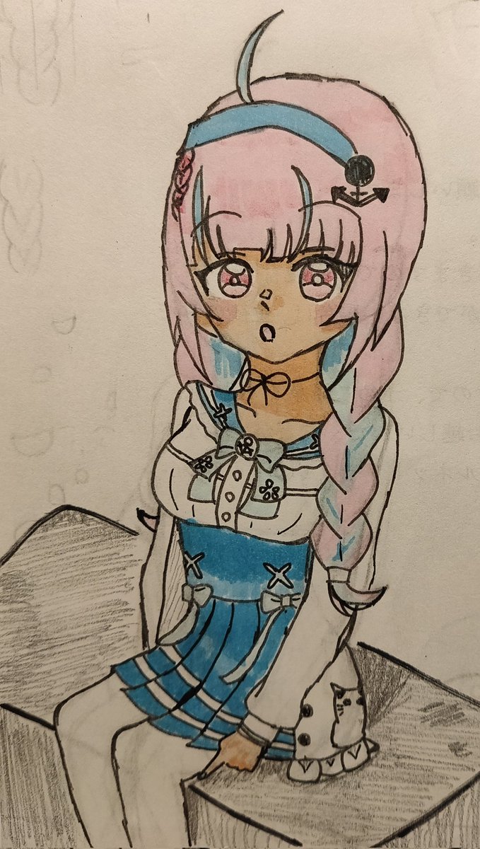 #あくあーと #アナログ絵 いやぁピンクのコピック買って 色々遊んでたら水色出てきて こりゃあくたん描かないと!() となり描きました😊👍 華奢なメス()になってるといいな! 自分の中では結構いい方よ( *¯ ꒳¯*) 満足してる😚