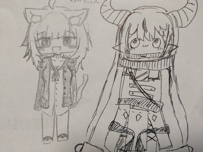 #絵かゆ #laplus_artdesu なぜか山田のがでかくなってしまった() 凝った絵を描くのもいいけど、 ささっとミニキャラ描くのもいいよね