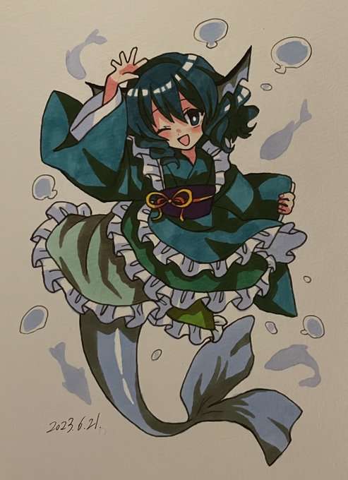 205 915 #深夜の真剣お絵描き60分一本勝負 わかさぎ姫 23/06/21 23:04