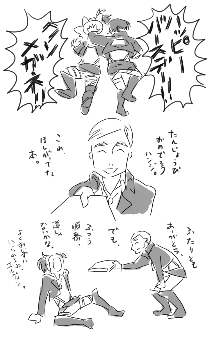 24 157 楽しげな幹部ズ。すきなカプ詰め込んだやつ。 #エルリ #eruri #モブハン #ミケナナ 21/08/02 21:12