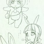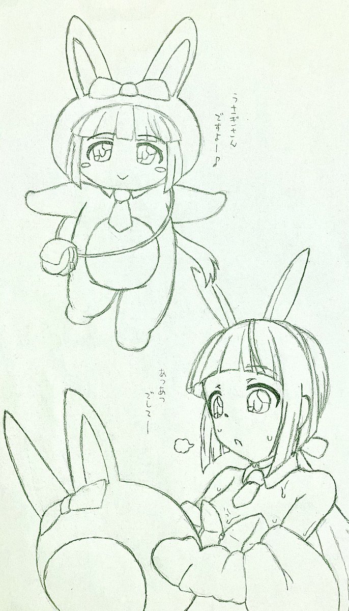 よしのんうさぎは着ぐるみかバニーガールか、議論が分かれているようなので、その両方を同時に満たす方法を考えてみました。一応今年の描き初め。おせんべいポーチがチャームポイント。 #依田芳乃 #今夜もよしのん可愛いのん (タグお借りしました)