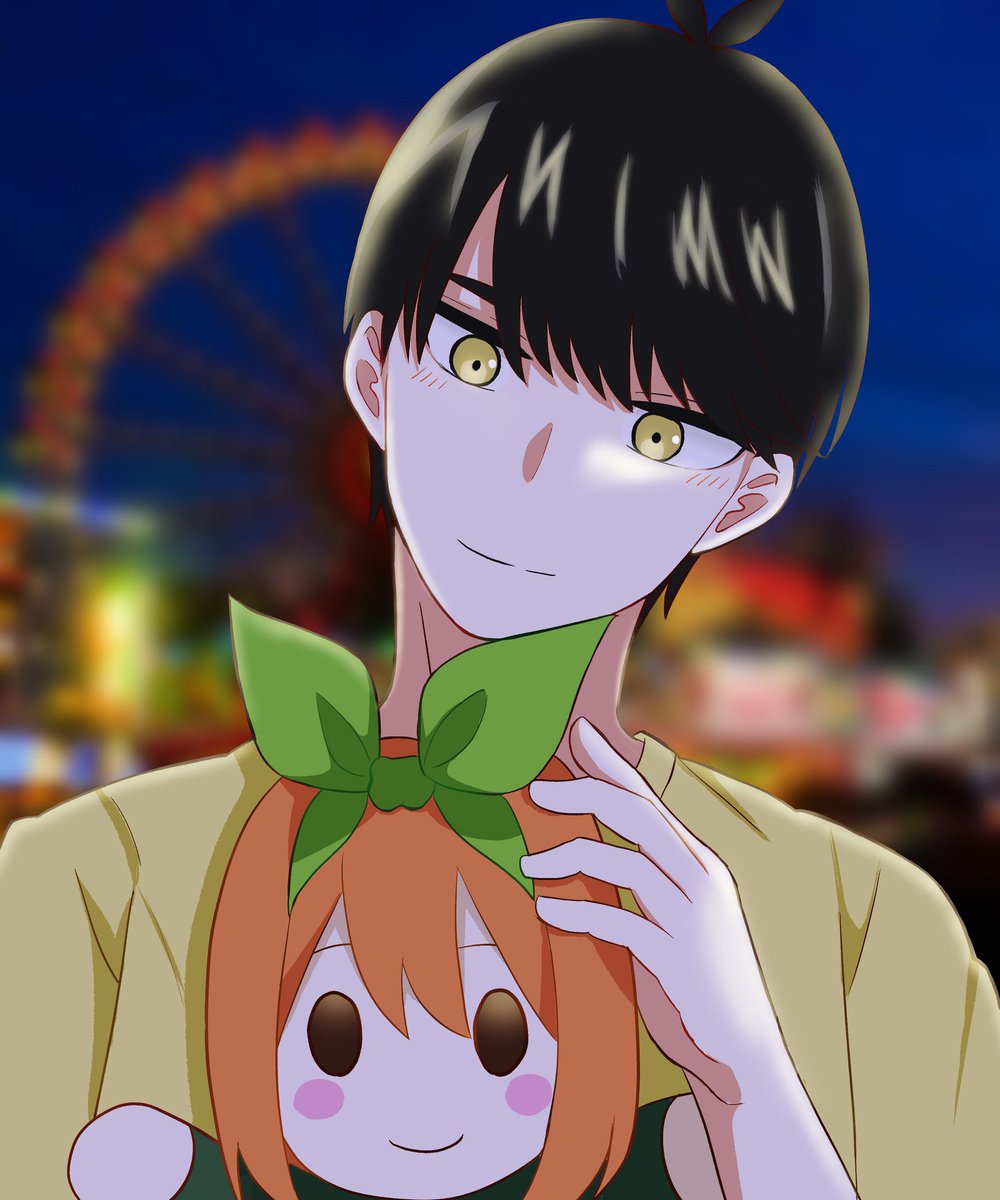 寝ぼけて姉のリボンと間違えて登校しちゃう妹四葉ちゃん #五等分の花嫁 #中野四葉 #イラスト #絵描きさんとつながりたい #イラスト好きな人と繋がりたい