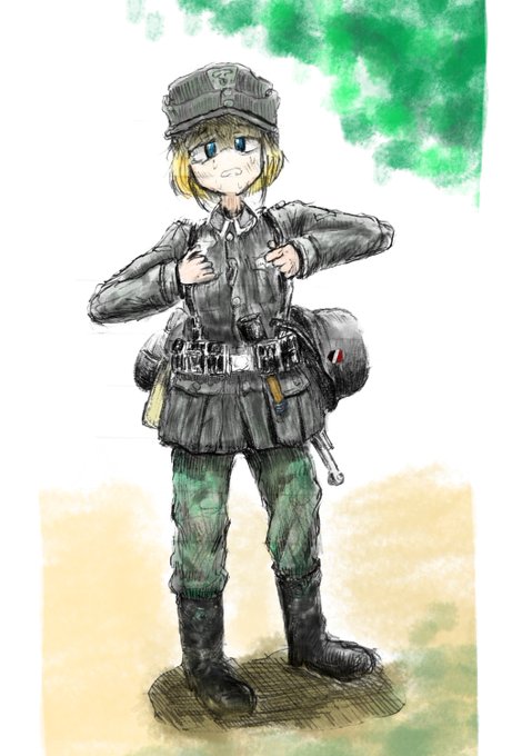 帽子と弾薬パウチ以外ほぼドイツ兵になっちゃった今日の落書き twitter.com/yabahi_chan/st…