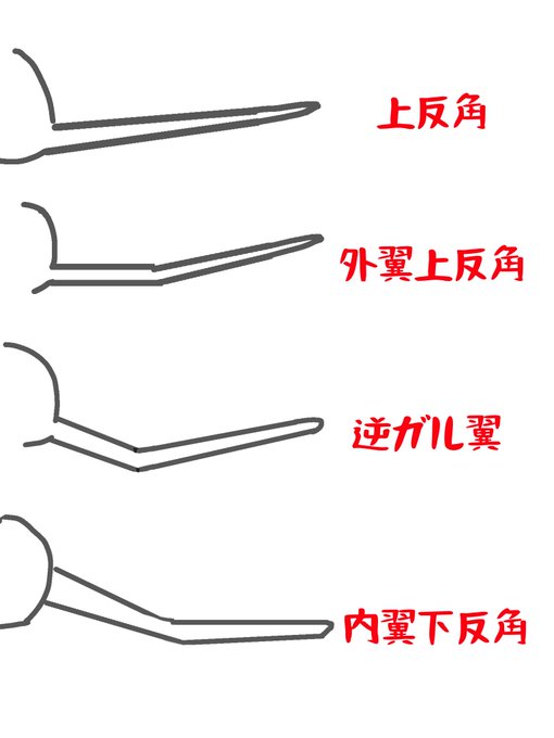 1番上のやつ以外全て逆ガル翼って認識してる人がいたので わかりやすい図つくった