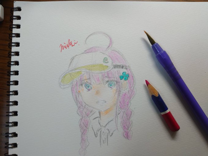 初らくがき 月歌ちん 『てへぺろりんこ☆』 即興うろおぼ衝動描きやから 合ってるか不安やけど← #ヘブバン #らくがき #イラスト #水彩画
