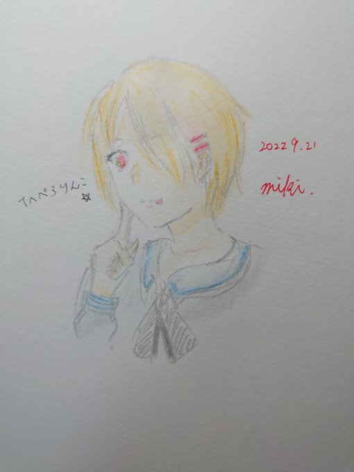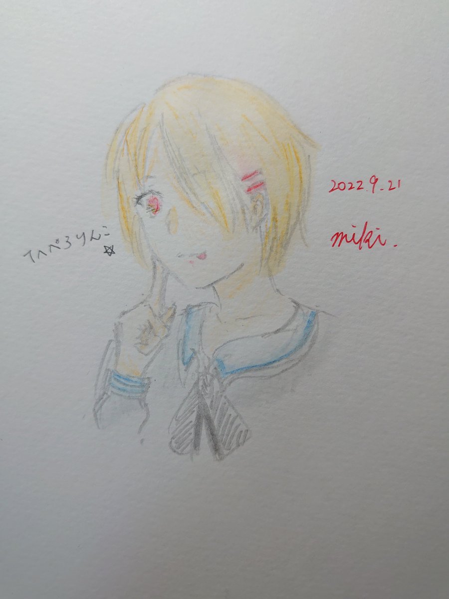 0 23 初らくがき 月歌ちん 『てへぺろりんこ☆』 即興うろおぼ衝動描きやから 合ってるか不安やけど← #ヘブバン #らくがき #イラスト #水彩画 22/09/21 20:03
