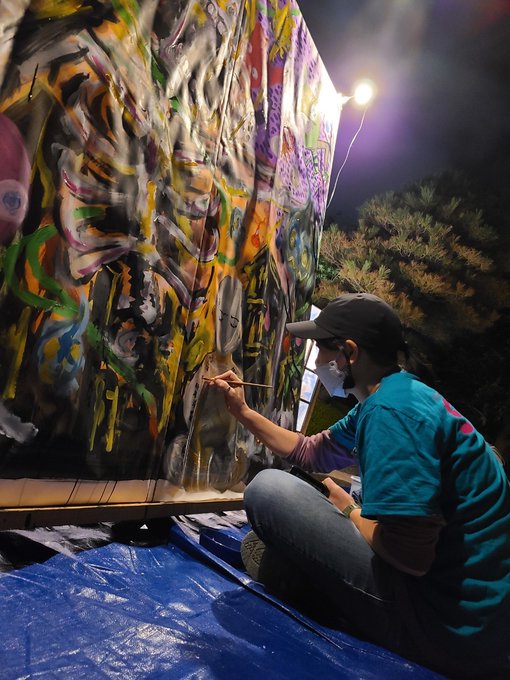 1 15 今夜は武家屋敷にて三人でライブペイントしました。 耳なし芳一 三人の世界観 Poriくん、まほさん、わたし 水燈路もあすでおしまい。 そして明日は三年ぶりのお祭りどう行列ありまっす! #イラスト #ライブペイント 22/10/15 22:44