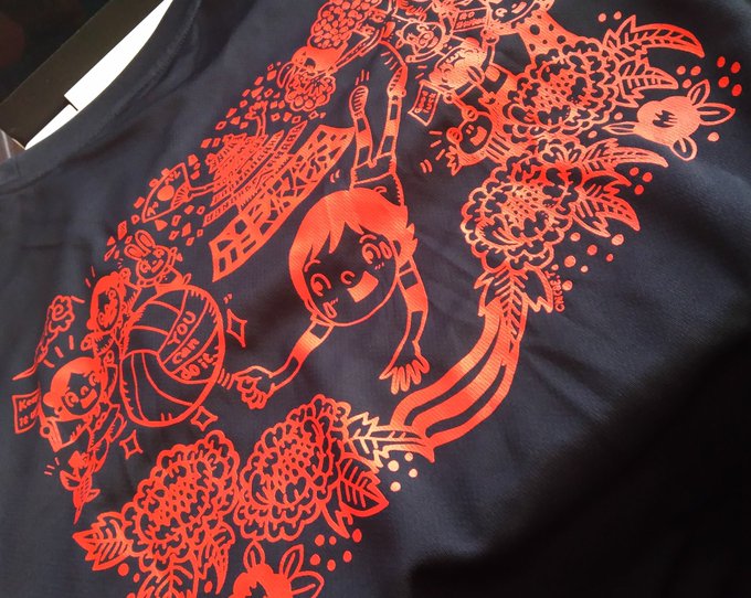 今年の中学生の島根選抜のTシャツにも描いたこの絵をつかっていただけました 頑張れ!中学生諸君!!! #JOC #バレーボール #イラスト