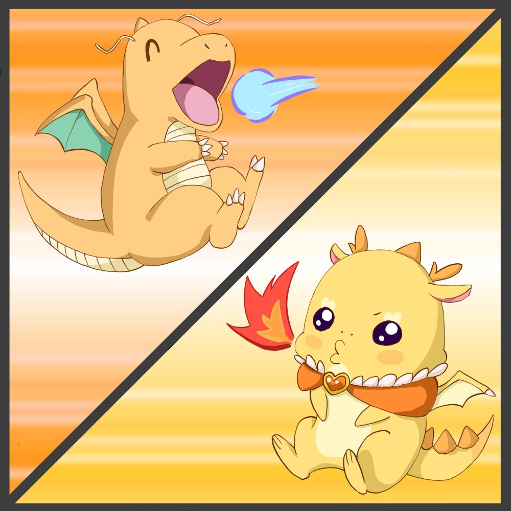 メンメンはどこかカイリュー感あると思って描きました カイリューははかいこうせん噴いてます #precure #メンメン #ポケモン #イラスト