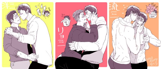 【洋三とリョ三と流三】 それいゆさんの三受ツイが可愛すぎて描いてしまいました。どれも違って、みんな良い・・・。ミに惚れられたが最後、堕ちるしかないのよ。 twitter.com/Soleil3009/sta…